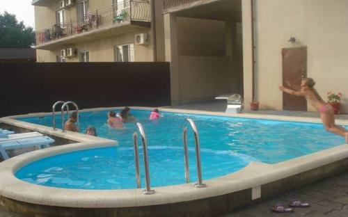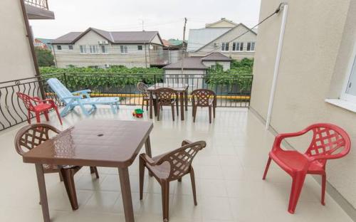 Гостевой дом состоит из трех этажей. Все номера выполнены в едином стиле. На втором этаже находится площадка, где вы можете посидеть в сети благодаря Wi - Fi. В подвальном помещении расположилась просторная кухня - столовая и прачечная.