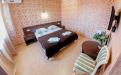 Номерной фонд – 7 номеров и каждый номер имеет стандартный классический дизайн и укомплектован: полутора или двуспальными кроватями с удобными современными матрасами, холодильниками, ЖК телевизорами, шкафами, прикроватными тумбами, кондиционерами, креслами, столами и стульями. В номерах категории «Студия» есть мини-кухня, электрический чайник и микроволновая печь, а так же необходимый набор посуды. Душ и туалет в номере.