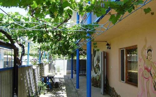 Территория удивит вас своей чистотой и ухоженностью. Для отдыха есть крытая беседка, увитая виноградом, в которой приятно провести время за разговорами или трапезой на открытом воздухе. Беседка оборудована деревянными столами с лавками и с двумя мягкими удобными диванами.