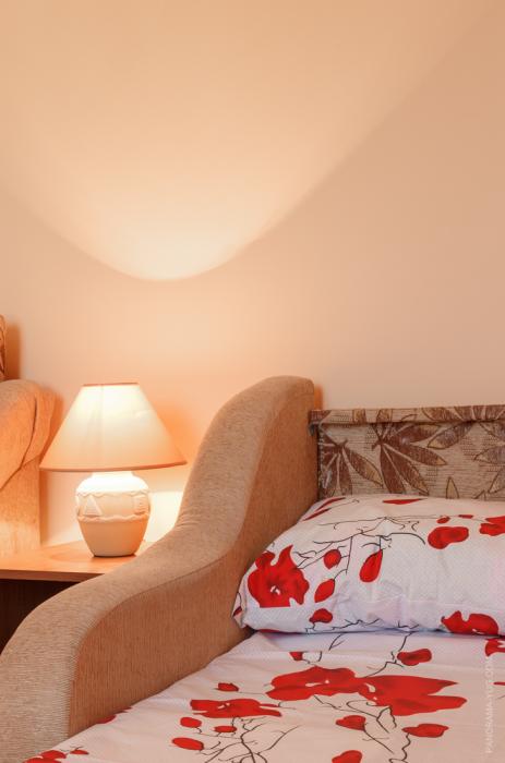 Мебель: двуспальная кровать, односпальная кровать либо диван-кровать (уточняйте при заказе), шкаф, прикроватные тумбочки, столик, зеркало, москитные сетки на окнах