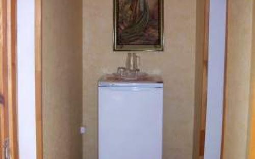 В этом номере две изолированные комнаты, кухня - прихожая (зеркало, тумбочка, раковина, стол для приготовления, полки с посудой, 4-х конфорочная газовая плита, холодильник), туалет и душ раздельный. В одной комнате находятся шкаф, две односпальные (ширина 90 см.) кровати, ТВ, две тумбочки, сплит-система; в другой - двуспальная (ширина 140 см.) и односпальная (ширина 90 см.) кровати, ТВ, тумбочка, журнальный столик, шкаф. Окна пластиковые, вид из окон - на улицу. При входе в номер сделан балкон со столик, за которым можно посидеть."
