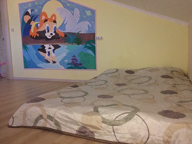 Апартаменты расположены на мансарде (3й этаж, отдельный вход), максимальная высота потолков 2,2м. Лестница довольно крутая, поэтому с маленькими детьми не размещаем в целях безопасности.