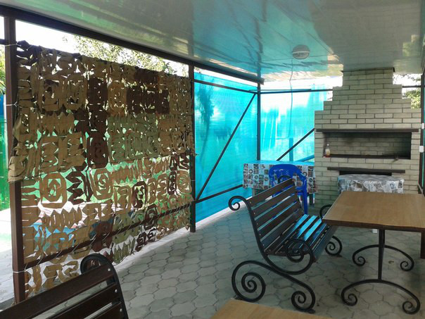 Гостевой дом располагает кухнями для самостоятельного приготовления и приёма пищи. Кухни оборудованы газовыми плитами, холодильниками, посудой и моющими средствами для общего пользования. Рядом для Вашего удобства имеются тенистые навесы, где Вы можете пообедать на свежем воздухе. Также во дворе под навесом расположен кирпичный мангал и теннисный стол.
