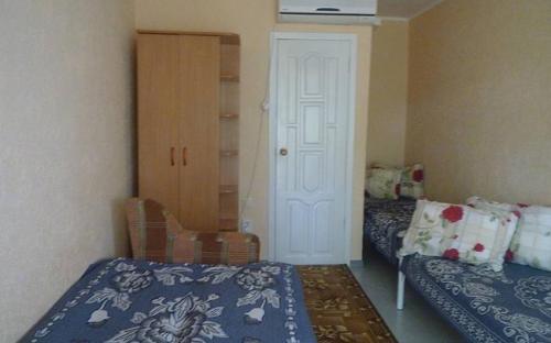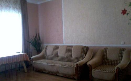 Двухкомнатный номер люкс со всеми удобствами. Площадь апартаментов составляет 40кв.м, плюс кухня, стиральная машина - автомат. Отдельный вход со двора. Перед входом имеется зона отдыха. До 5ти человек. В первой большой комнате расположены два раскладных дивана, обеденный стол со стульями, большой плоский телевизор, сплит-система (кондиционер). Во второй комнате двуспальная и односпальная кровати, шкаф купе, тумбочки и телевизор. В кухне есть все необходимые принадлежности (плита, холодильник, микроволновая печь).