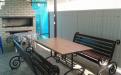 Во дворе: автостоянка, кирпичный мангал, столы под навесом, теннисный стол, детская площадка, лежаки.