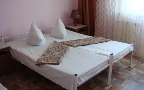 В 2-х, 3-х и 4-х местных номерах "эконом-класса". В номерах: шкаф, кровати односпальные, тумбочки, телевизор, вентилятор – по требованию. Рядом в отдельном строении – санузел с умывальниками, туалетами, душем (вода горячая постоянно). Столики со стульями вынесены во двор перед входом в номер.