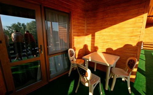 Номер со всеми удобствами: санузел, сплитсистела, холодильник, телевизор. Двуспальная и односпальная кровати, кресло/кровать или еврораскладушка для доп. места. Индивидуальная терасса со своим столом и стульями.