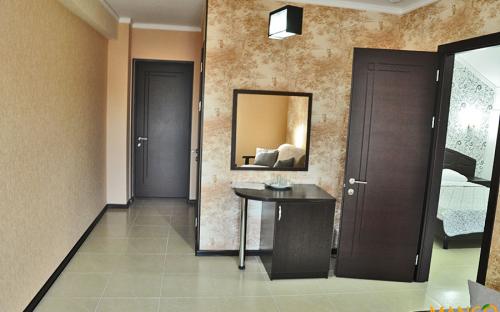 В номере: двуспальная кровать, диван кровать, спальная мебель, шкаф, 2 столика, стулья, тумбочка, трельяж, зеркало, посуда, сейф.