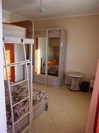 На первом этаже второго корпуса сдаются комнаты с кухней( кухня только для двух этих комнат), ванной и туалетом на две комнаты. Одна комната на 2 места и вторая на 3 места. Это обычный жилой дом на лето переоборудованный под отдых. Хозяйкой является моя мама, она следит за порядкуом и в нем же проживает. На втором этаже в этом же здании находятся номера со всеми удобствами: двухкомнатный на 5-7 человек и однокомнатный 4-х местный . Обычно этот дом снимает большая семья или компания из 7-10 человек.