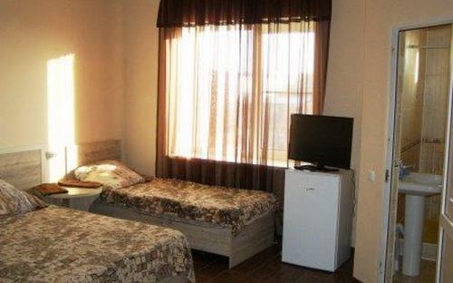 В номере: двуспальная и две односпальные кровати, комплект постельных принадлежностей и полотенце на каждое спальное место, ТВ, холодильник, сплитсистема, столик, шкаф-купе, санузел с душевой и раковиной, wi-fi.