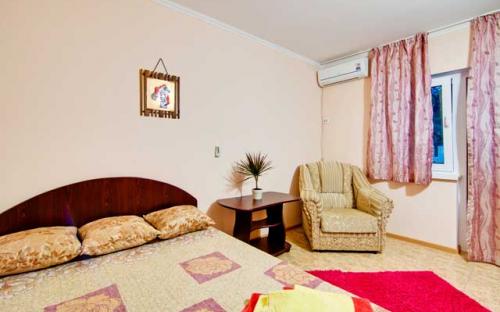 "Стандарт"- (14 кв.м.) с удобствами (душ + санузел). Номер оборудован: двуспальной кроватью, креслом-кроватью (или односпальной кроватью), шкафом для одежды, тумбочками, журнальным столом, ТВ, холодильником и кондиционером.