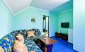 "Двух комнатный" 5-и местные - (28 кв. м.) 2-х комнатный (душ + санузел). Номер оборудован: двуспальной кроватью, мягким уголком, креслом- кроватью, шкафом для одежды, тумбочками, журнальным столом, ТВ, холодильником и кондиционером. Номера расположены на третьем этаже. Номера с балконом.