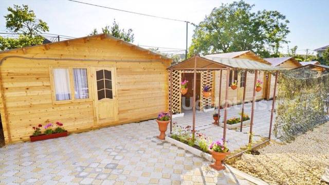 Деревянные дома. все удобства. Большой двор. Бесплатная парковка во дворе. Беседки и игровая площадка для детей.