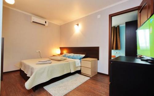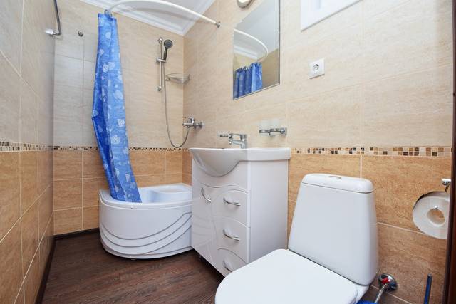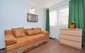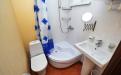 Просторная комната на трех человек. Двухспальная кровать и раскладной диванчик, двустворчатый шкаф для одежды и вещей, комод для белья, прикроватные тумбочки, холодильник Indezit, ЖК телевизор Supra 32″ с USB и HDMI выходами (10 каналов), кондиционер, просторный комфортный горячий душ, туалет и раковина для умывания.