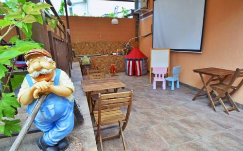 - Детская площадка: детская крепость, стульчики и столики, доска для рисования мелками и фломастерами. И многое другое!