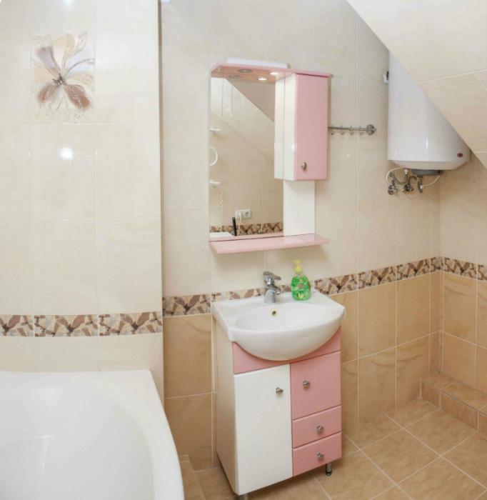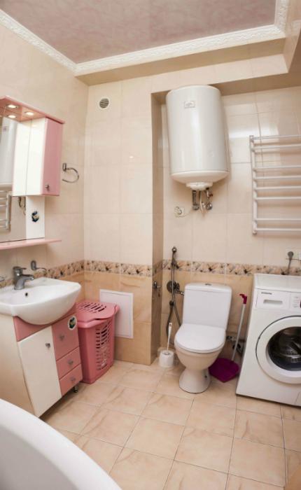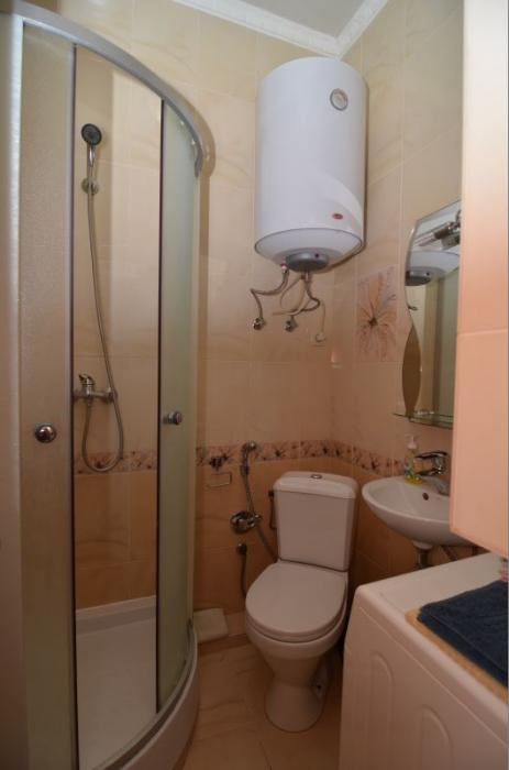 - ванная комната - туалет с раковиной, душевая кабина, гарнитур с раковиной и зеркалом, полотенцесушитель, корзина для белья, бойлер, фен, утюг, банные и лицевые полотенца, туалетная бумага, мыло.