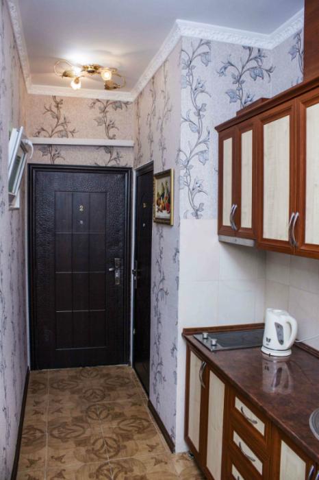 - вторая маленькая комната (кресло-кровать, тумбочка, ТВ) совмещена с кухней.