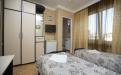 Люкс семейный. Номер расположен на 4-м этаже с выходом на открытую террасу. В номере 2-х спальная кровать и диван-кровать. Оплата доп.место детям до 13-ти лет- 50% от основного и 70%- от основного места с 14 лет.