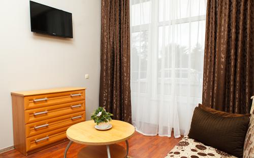Однокомнатный номер, рассчитанный на два основных места. В комнате предусмотрено наличие либо одной двуспальной, либо двух односпальных кроватей. Предусмотрено дополнительное место – кресло-кровать. Индивидуальный балкон. Номера с видом на горы, парк, внутренний дворик.