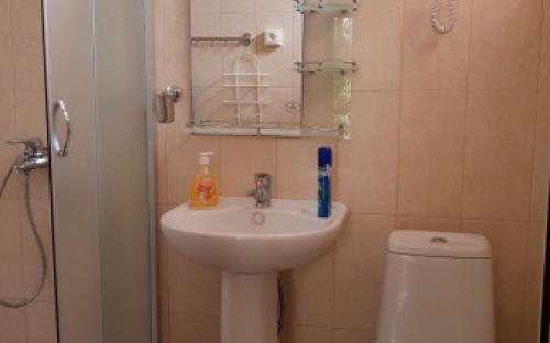 - санузел: фен, душевая кабина, унитаз, раковина с зеркалом, таз для стирки, разовые туалетные принадлежности