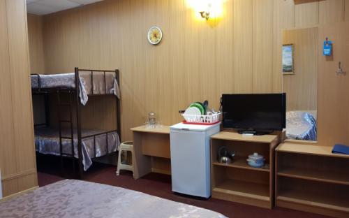 - спальные места: двухспальная кровать (160*190) и двухярусная кровать, доп.место (оплачивается отдельно) - кресло-кровать.