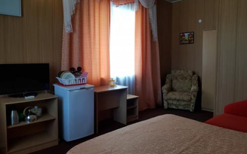 Номера данной категории однокомнатные, расположены на 2 этаже в основном корпусе. Площадь номера 20кв.м. Есть балкон, общий на 6 номеров (вход в номера с балкона). Номеров данной категории - 2.