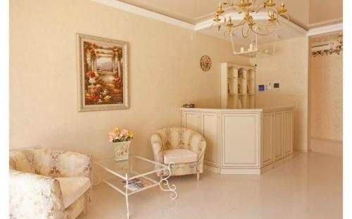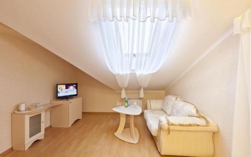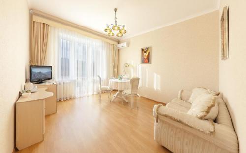 Относится к номеру повышенной комфортности. Мебель и обстановка этого номера значительно отличается от остальных номеров в отеле. В номере халаты, тапочки, средства личной гигиены. Ежедневно доставляется питьевая вода, чай и кофе.
