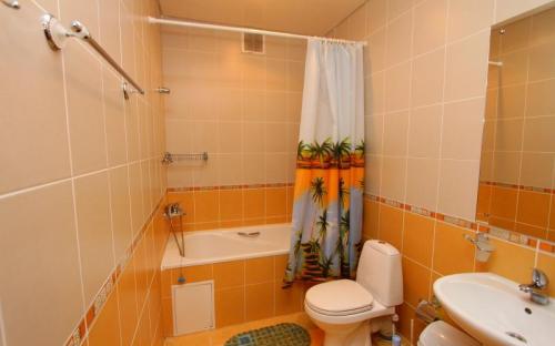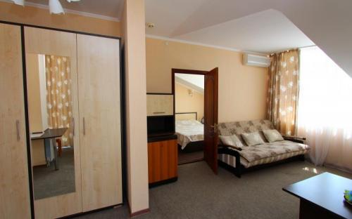2-х местный 2-х комнатный номер: 11 комнат: 2-х спальная кровать, шкаф, туалетный столик, тумбочки, журнальный столик, мягкая мебель, стол-бар, телевизор, холодильник, сплит-система в 2 комнатах, балкон. Сан. уз. + ванна или душ