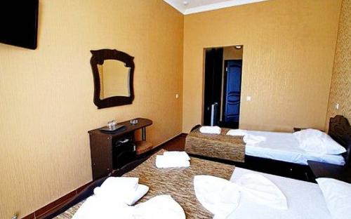 В каждом номере: качественная мебель, душевая кабина, умывальник и санузел, фен, сплит-система, большой ЖК ТВ, холодильник.