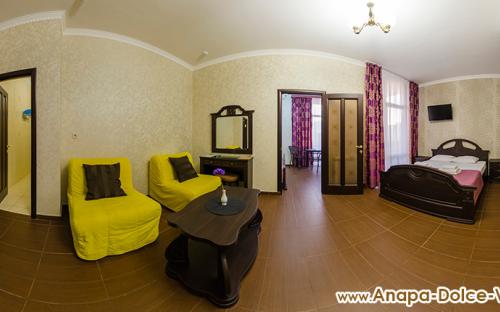 | Люкс двухкомнатный (до 5-ти человек) с балконом | 3200 | 3800 | 5000 | 5800 | 6500 | 4700 | 3200 |