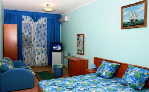 В номере: телевизор, холодильник, кондиционер, две односпальные кровати или одна двуспальная, две прикроватные тумбочки, шкаф, журнальный столик, чайник, фен предоставляется по просьбе гостя, санузел с душем.