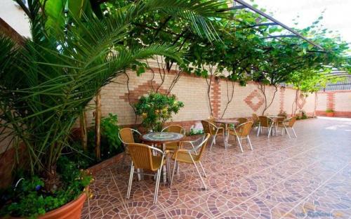 В меню включены традиционные блюда европейской, русской, грузинской, украинской кухни — более 60 наименований, которые постоянно обновляются. Все представленные в рационе блюда готовятся из свежих продуктов, преимущественно выращенных на территории края. У вас есть уникальный шанс познакомиться с обширной винотекой гостевого дома. Здесь собраны вина Старого и Нового света — молодые и выдержанные, игристые легкие и терпкие с нотами дерева и черных ягод. Дегустации проводятся в кафе. Хороший сервис, вежливость и качество обслуживания делают пребывание в кафе приятным. Здесь у вас не будет проблем с питанием для детей.