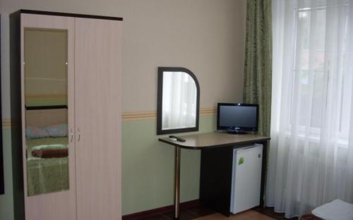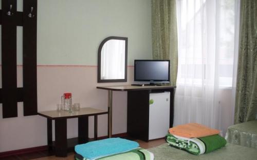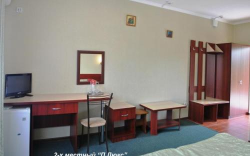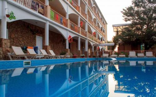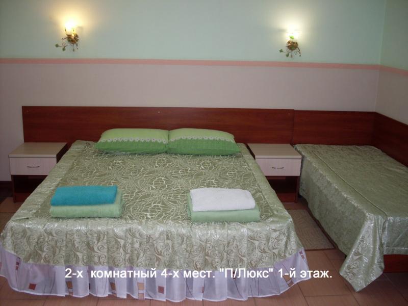 Частная гостиница 2010 года постройки начала свою жизнедеятельность с начала мая 2011 года. Новое современное четырех этажное здание с удобным расположением 46 номеров "ПолуЛюкс" из которых пять номеров двухкомнатных, просторный и в то же время уютный, озелененный двор, бассейн с подогревом внушительных размеров с шезлонгами для отдыха, рядом с бассейном два уличных летних душа и санузла. В каждом номере для Вашего комфорта: телевизор, сплит-система, холодильник, полный комплект необходимой мебели и свой санузел который не придется делить с соседом по отдыху. Три двухкомнатных номера "ПолуЛюкс" имеют просторную террасу, остальные общий балкон. На территории гостиницы имеется кухня для самостоятельного приготовления пищи со всей необходимой посудой, на фасаде шашлычная с прохладительными напитками.