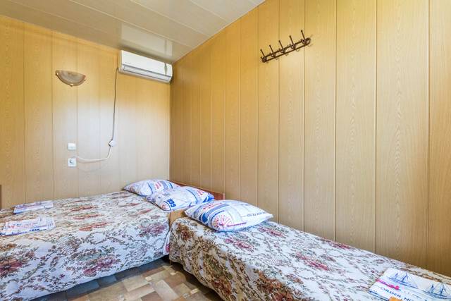 - "Эконом": три одноместных кровати, шкаф, тумбочка, кондиционер, телевизор, wi-fi.
